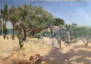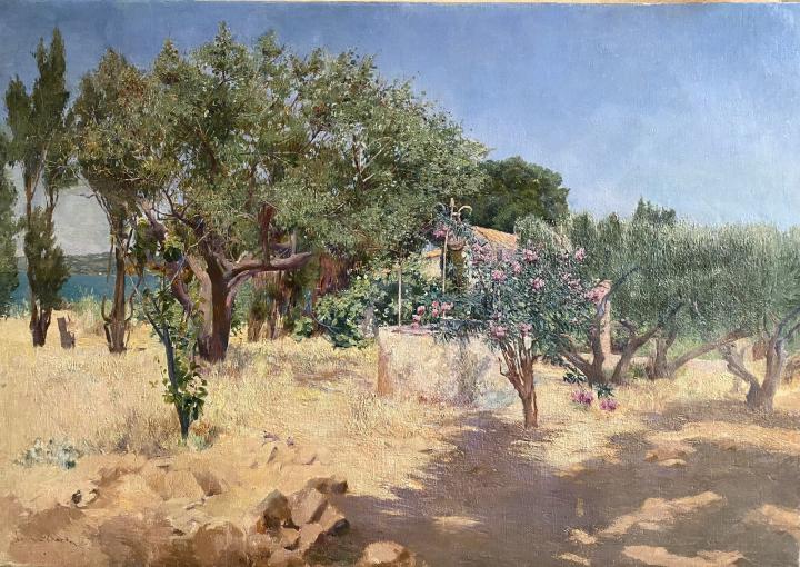 Certificato di autenticità : Henry Gérard ( Tolosa 1860- Martigues 1925) « Oliviers en Provence » olio su tela (cm 83 x 116) firmato in basso a sinistra : Henry Gérard Jean-Claude Montanier ha aggiunto il quadro al catalogo ragionato pubblicato il primo gennaio 2025. (cfr.documento in allegato) Henry Paul Gérard, pittore post-impressionista francese, nacque a Tolosa il 28 aprile 1860 , morì a Martigues il 12 agosto 1925. Si formò alla scuola di belle arti di Tolosa. Proveniente da una famiglia borghese, la sua fortuna gli permise di vivere secondo i propri gusti. Decise così di dedicarsi all’arte grafica, accettando di seguire a Parigi alcuni amici tolosani, tra cui Henri Martin, Paul Gervais, Henri Rachou e François Gauzi. Gérard frequentò i loro “Ateliers” e fu probabilmente Rachou a presentargli Henri de Toulouse-Lautrec, del quale eseguì un ritratto: “Toulouse Lautrec au motif”. Nella capitale francese, fu allievo di Gustave Boulanger e Jules Lefebvre. Terminato questo apprendistato, tornò a Tolosa dove aprì il proprio atelier in 16, rue du Japon . Nel 1899, l’artista organizzò con alcuni amici una mostra presentando dei dipinti destinati al Salon des Artistes Français dello stesso anno, la mostra fu molto apprezzata dalla critica. Nel 1889, Gérard sposò in prime nozze Étiennette Marie Laure Malidat ma il loro matrimonio non durò e il divorzio venne ufficializzato nel 1898. La fine del secolo segnò una svolta nella vita di Henry Gérard. La rottura familiare e il potere affascinante della Provenza lo spinsero a posare il suo cavalletto sulle rive dello stagno di Berre, a Martigues. Proprio in questo luogo, nel 1901, Gérard acquistò un’antica dimora che trasformò in una splendida villa. (Villa Khariessa) Nel 1905, sposò in seconde nozze Joséphine Thérèse Bastin, una cantante lirica di buona fama, che si esibiva al Théâtre de la Monnaie di Bruxelles e in vari teatri francesi. A Martigues, Gérard trovò l’essenza della sua ispirazione e il meraviglioso contesto di Villa Khariessa divenne un punto d’incontro per gli amici della coppia soprattutto artisti che immortalarono il sito in diversi quadri. Fino alla sua morte, il 12 agosto 1925, continuò a dipingere con grande sensibilità i paesaggi soleggiati e mutevoli di Martigues e della Provenza. Attività artistiche Artista dai molteplici talenti, Henry Gérard fu inizialmente illustratore prima di diventare pittore. Si interessò anche alla realizzazione e decorazione di mobili, al cuoio sbalzato e alla fotografia. Gérard espose per la prima volta nel 1886 partecipando al “ Salon de l’Union artistique” di Tolosa . Dal 1911 al 1913, espose al “Salon de la Société des Artistes méridionaux”, Dal 1896 al 1911, espose al “Salon des artistes français” di Parigi ottenendo una Menzione Onorevole nel 1904 con “Bataille de fleurs”. (cfr.lista in allegato) Nel 1901,Gérard partecipò all’esposizione della “Libre Esthétique” (Bruxelles), un circolo artistico d’avanguardia creato nel 1894 con l’obiettivo di organizzare mostre, concerti, conferenze mettendo a confronto tutte le discipline artistiche. In questo contesto, egli ebbe il privilegio di esporre le sue opere a fianco di quelle di Cézanne, Denis, Monet,Pissarro,Renoir,Sisley,… Marcel de Paredes scrisse: «Era un artista di grande talento, innamorato della luce meridionale. Il Maestro Henry Gérard aveva una mano eccezionalmente leggera, una sicurezza che appartiene a un uomo che ha abituato il suo occhio a cogliere l’anima delle cose” Descrizione: Il dipinto qui descritto raffigurante un paesaggio provenzale si colloca nel periodo in cui Gérard, trasferitosi nel sud della Francia, espresse al meglio la sua sensibilità attraverso una tavolozza abbagliante di luce. Al centro della composizione, un pozzo e una casa sono semi coperti da una folta vegetazione che il pittore restituisce a piccoli tocchi materici in modo da creare un effetto in rilievo molto suggestivo. Sulla sinistra, attraverso i tronchi degli ulivi, l’azzurro dell’acqua apre una finestra sul paesaggio dello sfondo. La luce del sole inonda la scena regalando all’osservatore una seducente impressione di gioia e calore. Come scrisse un famoso critico d’arte, Jean de l’Hers: Nous sommes en pleine Provence, c’est chaud, c’est violent mais cela ne cesse pas d’être harmonieux” Bibliografia : “HENRY GERARD Sa vie, son oeuvre” Jean-Claude Montanier Association les amis de Henry Gérard « DICTIONNAIRE DES PEINTRES SCULPTEURS DESSINATEURS ET GRAVEURS » E.Benezit Vol.4 (p.679) « DICTIONNAIRE DES PETITS MAITRES DE LA PEINTURE 1820-1920 » Schurr & Cabanne Les Editions de l’Amateur (p.324) Stato di conservazione : ottimo In fede: