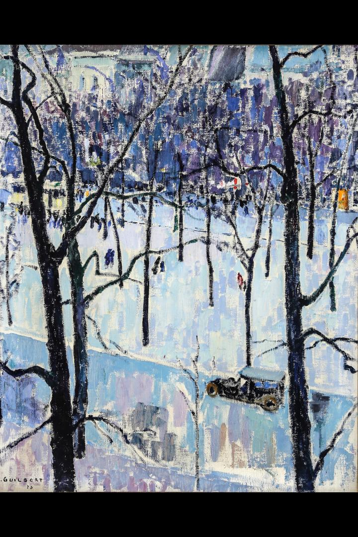 Certificato di autenticità. Maurice Guilbert (Mons 1876-1933) «Paysage arboré enneigé animé de promeneurs et d’une automobile » olio su tela (cm 81 x 66) Firmato in basso a sinistra : M.Guilbert Datato : (19)20 Maurice Guilbert (Mons 1876-1933) Pittore luminista di paesaggi e di vedute cittadine ,fu allievo della “Académie de Mons” (1890-1896) e lavorò nella sua regione ( Hainaut), nelle Ardenne e nel sud della Francia. Dal 1902, Guilbert espose alle mostre del “Bon Vouloir” di Mons, un circolo fondato nel 1895, dalla tradizione artistica unica in Belgio. Aperto a tutte le correnti estetiche, questo salone emblematico difese una visione libera, esigente e decisamente contemporanea dell’arte, dove i giovani talenti ebbero il privilegio d’incrociare i più grandi nomi della scena artistica internazionale Al salone del 1914, furono presentate sei opere di Vincent van Gogh , costituendo una delle prime esposizioni pubbliche delle opere di questo grande Maestro in Belgio e nei cataloghi delle varie esposizioni si trovavano i nomi di Pat Andréa, Ana Boch, Louis Buisseret, Zéphir Busine, Anto-Carte, Valérius De Saedeleer, Paul Delvaux, Gustave Desmet, Foujita, André Lhote, René Magritte, Victor Servranckx, Paul Signac, Karel Van De Woestijne, Vincent Van Gogh e Théo Van Rysselberghe. Guilbert partecipò a 19 edizioni del salone, fu l’invitato d’onore nel 1911 e nel 1948 e nel 1971 il circolo organizzò due sue retrospettive. L’artista espose inoltre alla “Exposition Universelle et Internationale” di Gand del 1913, al Salon di Gand del 1922, ai Saloni annuali del “Les Indépendants Cercle d’Art” del 1909 e del 1912, alla “Exposition Générale des Beaux-Arts Salon Triennale” di Bruxelles del 1914 e alla Esposizione internazionale d’Arte della città di Venezia del 1924. (cfr. cataloghi in allegato) Durante la prima guerra mondiale soggiornò nei Paesi Bassi. La critica scrisse: “Maurice Guilbert est le peintre des plans d’eau et des arbres. Il en souligne la tendre poésie qu’il cerne dans un coloris délicat, lumineux et vivant. Il peint par petites touches légères qui étincellent comme de petites flammes. Son oeuvre est enthousiaste, , chaleureuse et spontanée. Un petit morceau de prairie, un fossé ou un coin de ciel suffisent à fixer la poésie de la nature sur la toile” Fu presidente del circolo d’arte di Uccle. Opere presenti nei seguenti musei : Musée des Beaux-Arts de Mons: “Paysage”; Ixelles : « Musée Communal des Beaux-Arts. Bibliografia : Serge Goyens de Heusch "L'impressionisme et le Fauvisme en Belgique" Ed.Fonds Mercator Albin Michel (pp. 294, 456) Paul Piron « Dictionnaire des Artistes Plasticiens de Belgique des XIX et XX siècles » Ed. Art in Belgium Vol.1 (p.666) « ARTO " Dictionnaire Biographique Arts Plastiques en Belgique " (pp. 114) Paul Piron "Deux siècles de signatures d'artistes de Belgique" (297) Stato di conservazione : buono