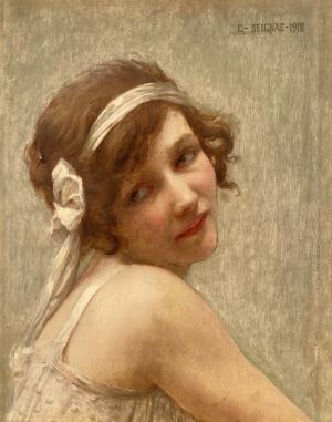 Certificato di autenticità : Guillaume Seignac (Rennes 1870-Parigi 1924) « Ritratto di giovane donna » olio su tavola su tavola (cm 37 x 28) Tavola: Tasset & Lhote Paris firmato e datato in alto a destra G.Seignac 1918 Figlio di Paul Seignac, Guillaume nacque a Rennes il 25 settembre 1870, morì a Parigi il 2 ottobre 1924. Pittore della “Ecole d’Ecouen”, fu allievo di Bouguereau,Tony Robert Fleury e Gabriel Ferrier presso l’Accademia delle Belle Arti di Parigi. L'École d'Écouen fu una colonia di artisti insediatasi a Écouen (Val d’Oise -Ile de France) a partire dagli anni 1860-1870, fondata dal pittore Pierre-Édouard Frère. Riunì diverse decine di personalità provenienti da tutto il mondo, che vi insegnarono e vi praticarono la loro arte e che fecero anche costruire degli atelier. Le opere prodotte appartengono agli stili realistico e naturalista e rappresentano principalmente paesaggi e scene di genere. Eccellente disegnatore, il suo soggetto preferito era il corpo femminile che egli dipinse spesso svestito con un chiaro riferimento all’antichità. Seignac espose al “Salon des Artistes Français” dal 1897 al 1914. Socio degli Artisti Francesi dal 1901, egli ottenne una Menzione onorevole nel 1900 e una Medaglia di terza classe nel 1903. Opere nei seguenti musei: San Francisco De Young Museum Smith College Museum of Art Phoenix Art Museum Mairie d’Ecouen Bibliografia : « DICTIONNAIRE DES PEINTRES SCULPTEURS DESSINATEURS ET GRAVEURS » E.Benezit Vol. 9 (p.509) Stato di conservazione : ottimo