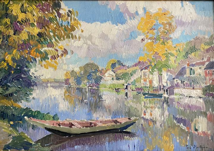 Certificato di autenticità. Paul Mathieu (1872-1932) « Barca sul fiume» olio su cartone (cm 38 x 54 ) (cm 66 x 82) con cornice dorata XIX sec. firmato in basso a destra: Paul Mathieu Pittore e acquarellista impressionista belga, Paul Mathieu, nacque il 31 agosto 1872 a Saint-Josse-ten-Noode (Belgio) e morì il 25 dicembre 1932 ad Ostenda (Belgio). Figlio dell’architetto Théophile Mathieu e di Catherine Goffoel, il 14 luglio 1896 sposò a Laeken Jeanne Stobbaerts, sorella del pittore Pierre Stobbaerts. Formatosi presso le Accademie di Saint-Josse-ten-Noode e di Schaerbeek, Mathieu fu allievo di Josephine Meyer. Nel 1893 fu membro cofondatore del gruppo Le Sillon, dove lavorò fianco a fianco con il pittore Alfred Bastien. Nel 1912, su iniziativa del re Alberto, il governo belga gli commissionò il Panorama del Congo, una pittura monumentale destinata a decorare il Palazzo del Congo Belga, costruito per l’Esposizione Universale di Gand del 1913. Egli trascorse quattro mesi in Congo, viaggiando in treno e a piedi da Matadi a Kinshassa, attraverso i paesaggi rigogliosi dell’Africa. Mathieu partecipò a numerose esposizioni nazionali ed internazionali: “Salon des Beaux-Arts” di Ostende, “Ausstellung Belgischer Kunst” di Berlino, ai “Salon Triennaux” di Bruxelles, Gand ed Anversa. Alla “Exposition Générale des Beaux-Arts” di Bruxelles espose le seguenti opere: 1893: “Nature morte” 1897: “Nature morte” 1900: “Après la pluie” “Intérieur” “Paysage” 1903: “En Hollande: Le Meerweede” “En Campine: La Chapelle” “En Flandre: Le Zoute” 1907: “Après l’orage” “ Les blés” “Du haut de la digue” 1914: “Allée de Flambayout, Kinshassa (Congo)” “Rives de la M’Pozo (Congo)” “Lers Baobabs au bord du fleuve,Kinshassa” Mathieu catturò la luce delle lande della Campine, delle rive della Senna , dei canali veneziani e delle spiagge del mare del nord restituendo ogni veduta attraverso piccoli tocchi materici dalla forma allungata. Durante la Prima Guerra Mondiale,l’artista si trasferì a Parigi dove dipinse dei paesaggi dell'Île-de-France e della Provenza ottenendo una grande notorietà anche in Francia, che nel 1923 gli conferì la Légion d’honneur. Dal 1896 al 1932 insegnò presso l’Accademia Reale di belle arti di Bruxelles. Nel 1932 venne nominato vicepresidente della Società Reale delle belle arti del Belgio. Nel 1905, su progetto dell’architetto Émile Lambot, Mathieu si fece costruire una casa, in stile eclettico, visibile ancora oggi in rue Américaine 172 a Ixelles, Descrizione: Il dipinto qui descritto, caratterizzato da tonalità chiare e luminose si colloca nel periodo luminista del pittore. Un movimento al quale aderirono molti artisti belgi probabilmente anche in seguito alla famosa esposizione della “Libre Esthétique” (Bruxelles, 1904) intitolata “Exposition des peintres impressionistes” dove esposero i grandi maestri francesi come Renoir, Monet, Sisley, Manet, Pissarro,… Onorificenze Ufficiale dell'Ordine di Leopoldo (1930) Ufficiale dell'Ordine della Corona (Belgio) Cavaliere della “Légion d’honneur" (Francia, 1923) Commendatore dell'Ordine della Corona d'Italia (1932) Opere presenti nei seguenti musei: Museo Reale delle Belle Arti di Bruxelles:”Première neige”; Museo di Ixelles: “La maison au bord de l’eau”; Bruges ; Musée de Courtrai: “Chaumière dans les dunes” ; Liegi; Musée d’Anvers: “Le zoute” Bibliografia : “ Dictionnaire des peintres sculpteurs dessinateurs et graveurs » E. BENEZIT Vol.7 (p.257) « Dictionnaire des peintres de fleurs belges et hollandais entre 1750 et 1880 » BERKO (p.257) « PIRON : Dictionnaire des Artistes Plasticiens de Belgique des XIX et XX siècles » Paul Piron Ed. Art in Belgium (p.146) « ARTO : Dictionnaire Biographique Arts Plastiques en Belgique » Andrée Dessert -Corvol (p.359) "L'Impressionisme et le Fauvisme en Belgique" Serge Goyens de Heusch Fonds Mercator Albin Michel (pp. 299-300-301-305-458 ) Stato di conservazione : ottimo